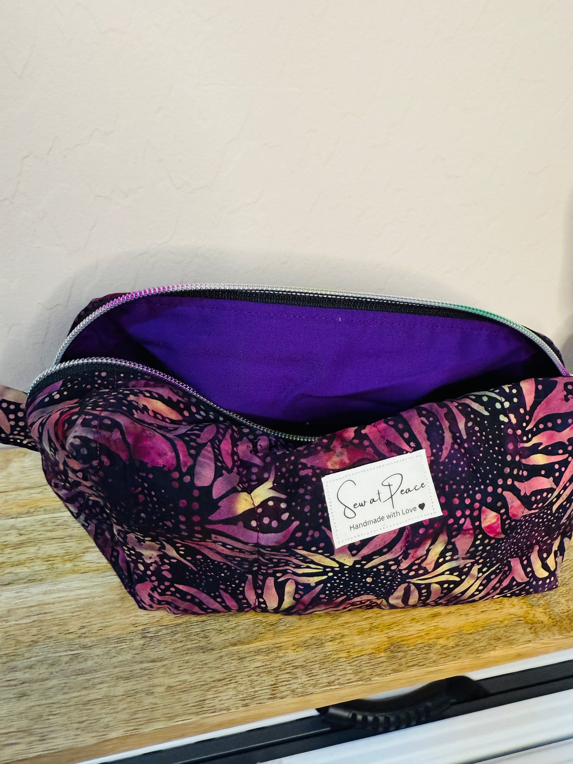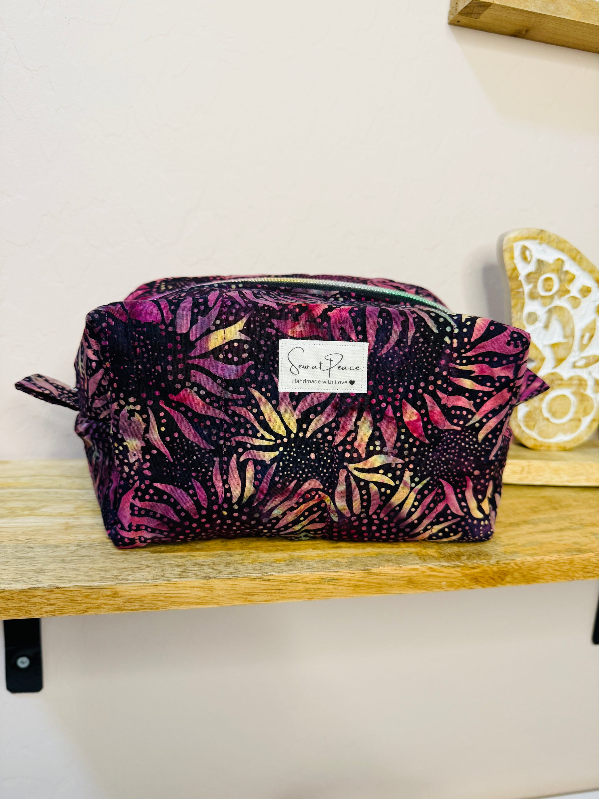 Makeup Bag/Boxy Pouches - Deep Purple Sunflower