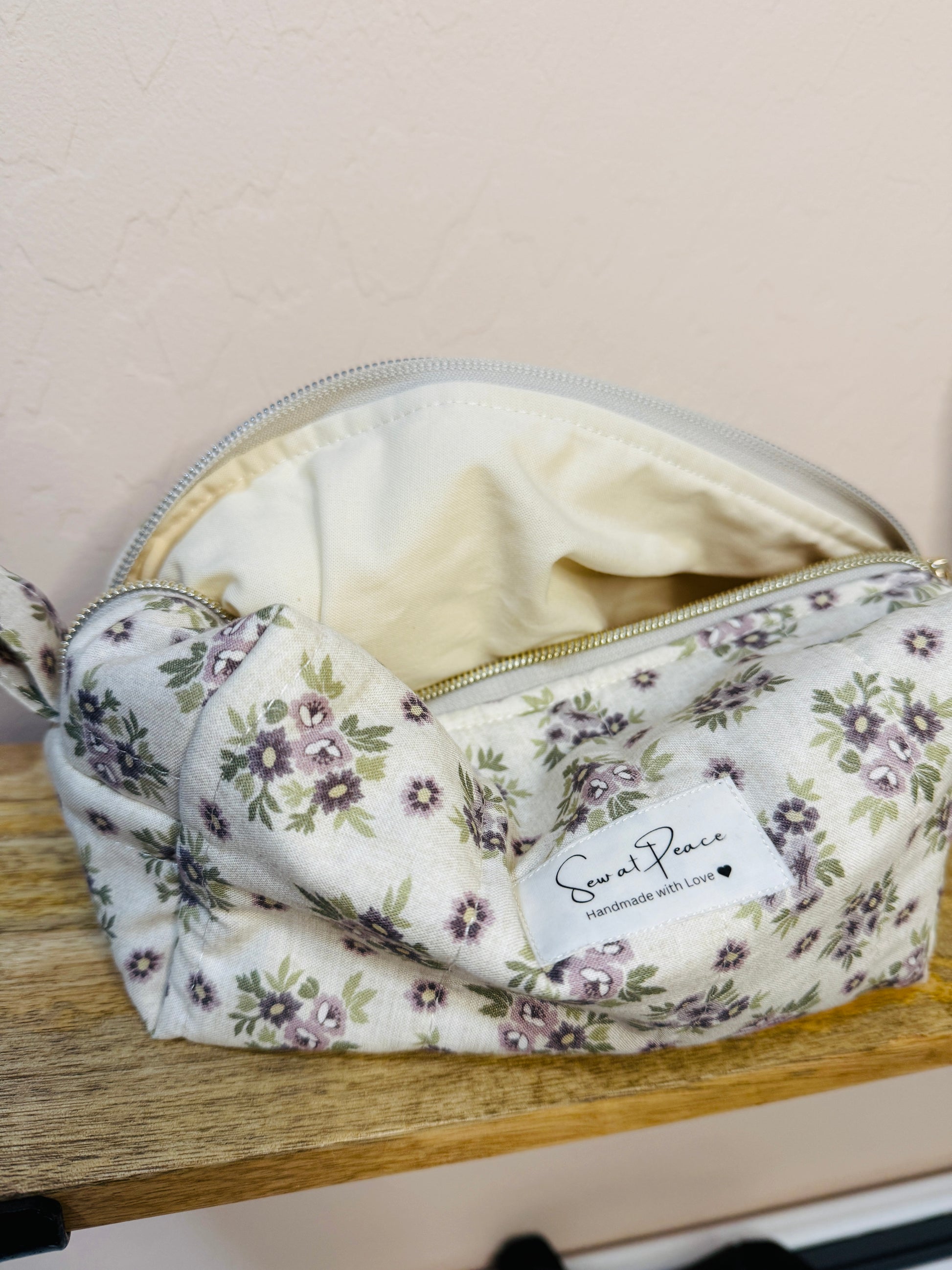 Makeup Bag/Boxy Pouches - Soft Beige Purple Floral