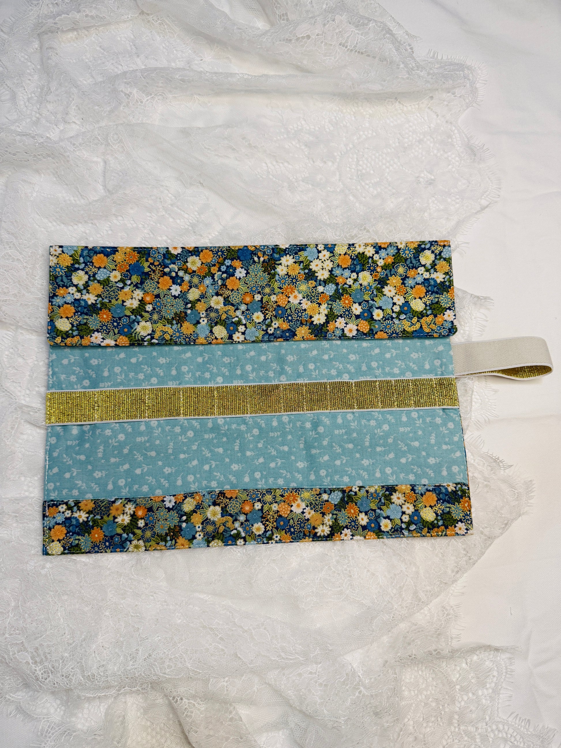 Roll with style! This handmade delightful brush organizer wraps your makeup essentials in this fun fabric—both inside and out. Metallic elastic straps snugly cradle up to 14 brushes of various sizes, from tiny detail brushes to full-sized fluffy ones, keeping everything exactly where you left it. Toss it in the wash when needed, let it air dry, and you're good to go. Compact enough for weekends away or daily touch-ups, this clever roll transforms brush chaos into organized bliss wherever your beauty routine takes you. This one-of-a-kind makeup brush roll is waiting to come home with you!