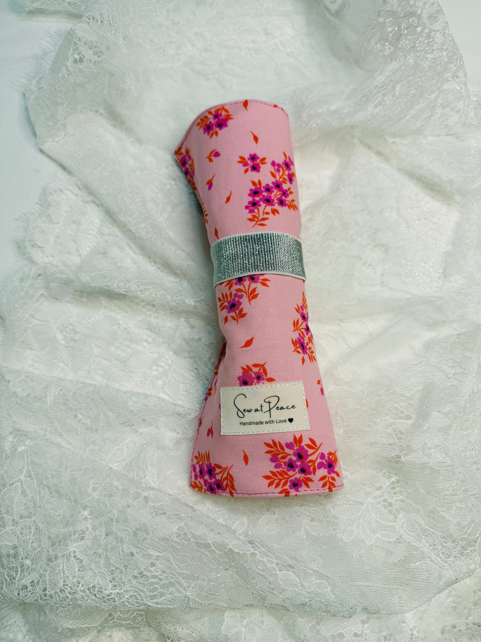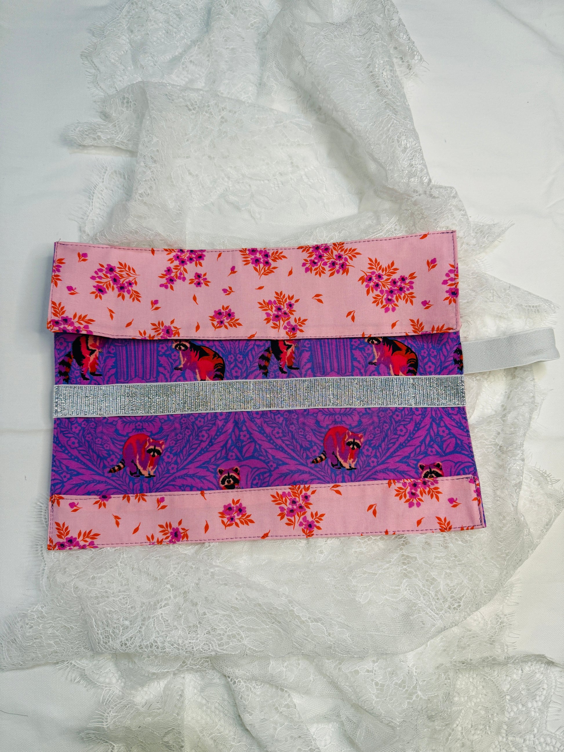 Roll with style! This handmade delightful brush organizer wraps your makeup essentials in this fun Tula Pink fabric—both inside and out. Metallic elastic straps snugly cradle up to 14 brushes of all sizes, from tiny detail brushes to full-sized fluffy ones, keeping everything exactly where you left it. Toss it in the wash when needed, let it air dry, and you're good to go. Compact enough for weekends away or daily touch-ups, this clever roll transforms brush chaos into organized bliss wherever your beauty routine takes you. This one-of-a-kind makeup brush roll is waiting to come home with you!