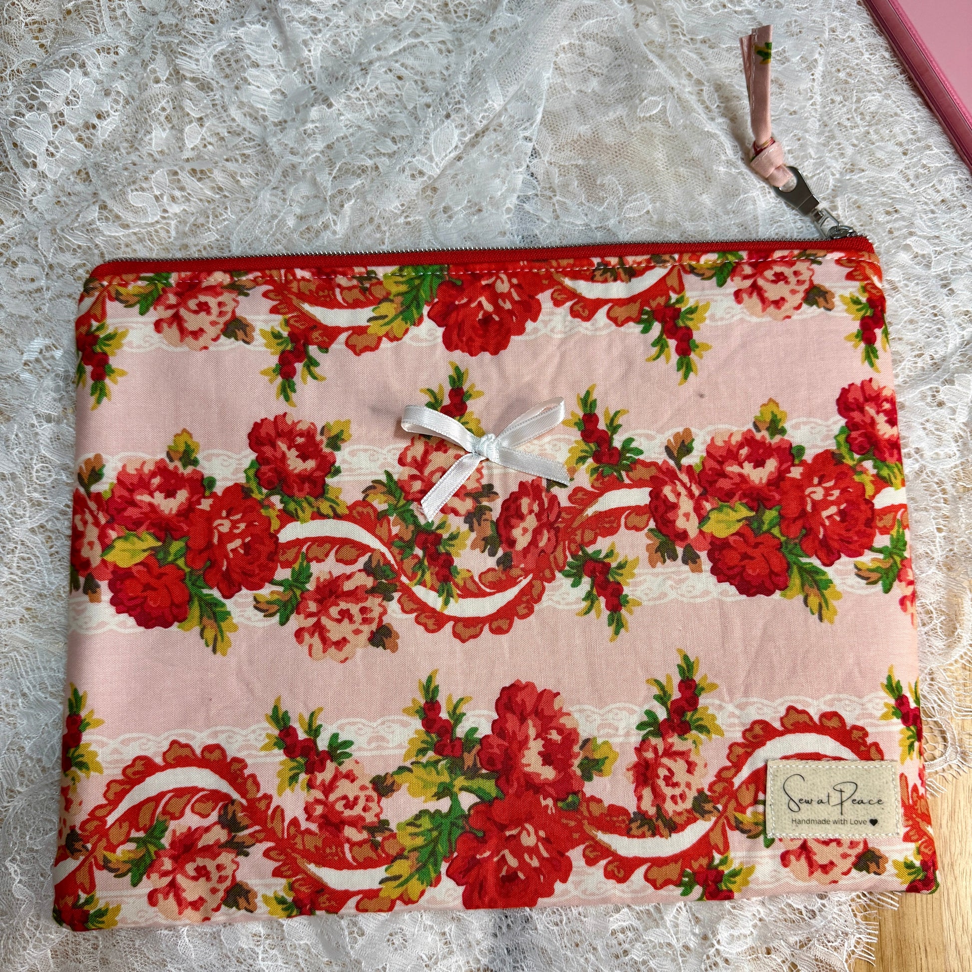 Tablet/iPAD Sleeve - Pink Red Lace