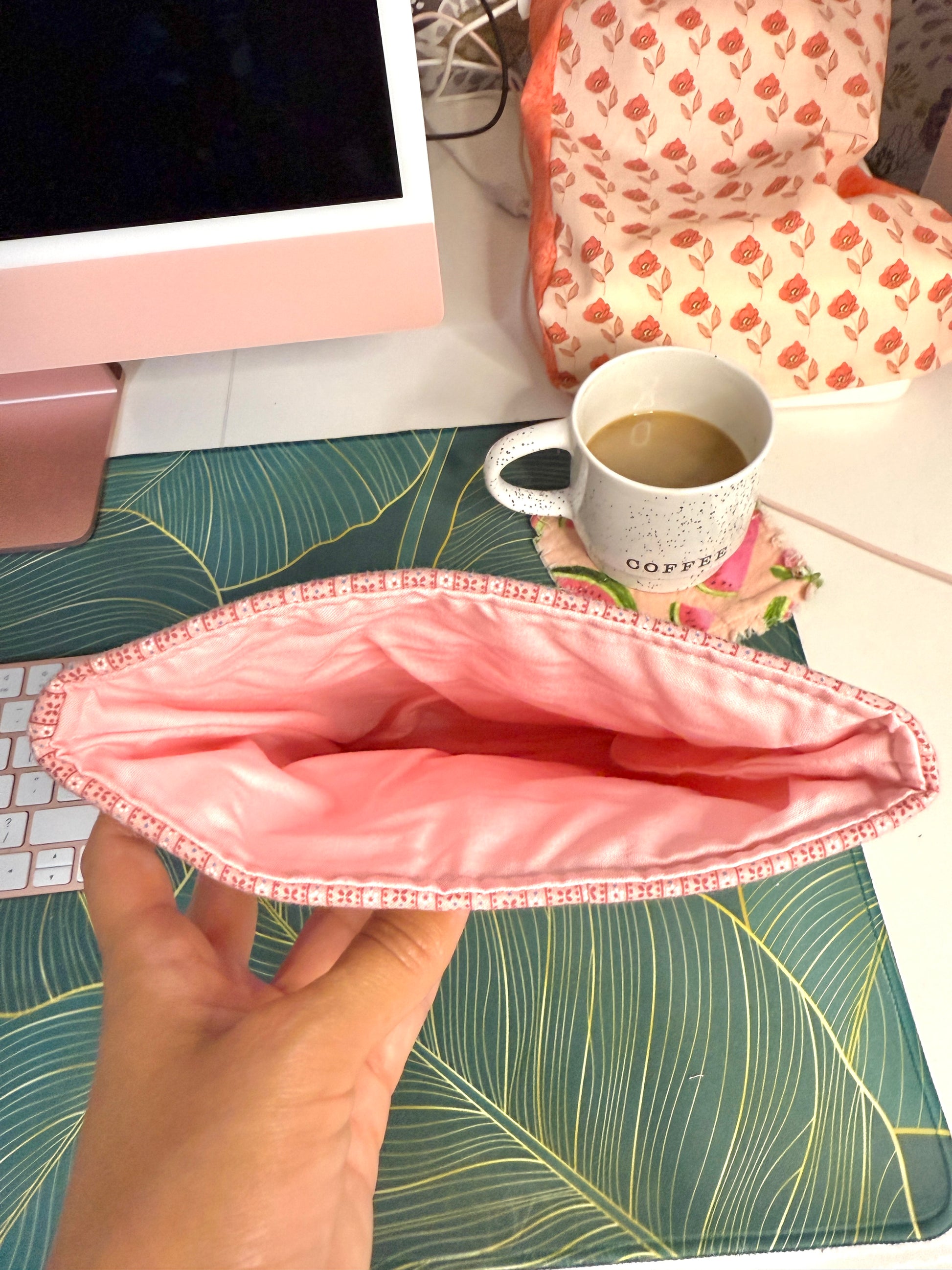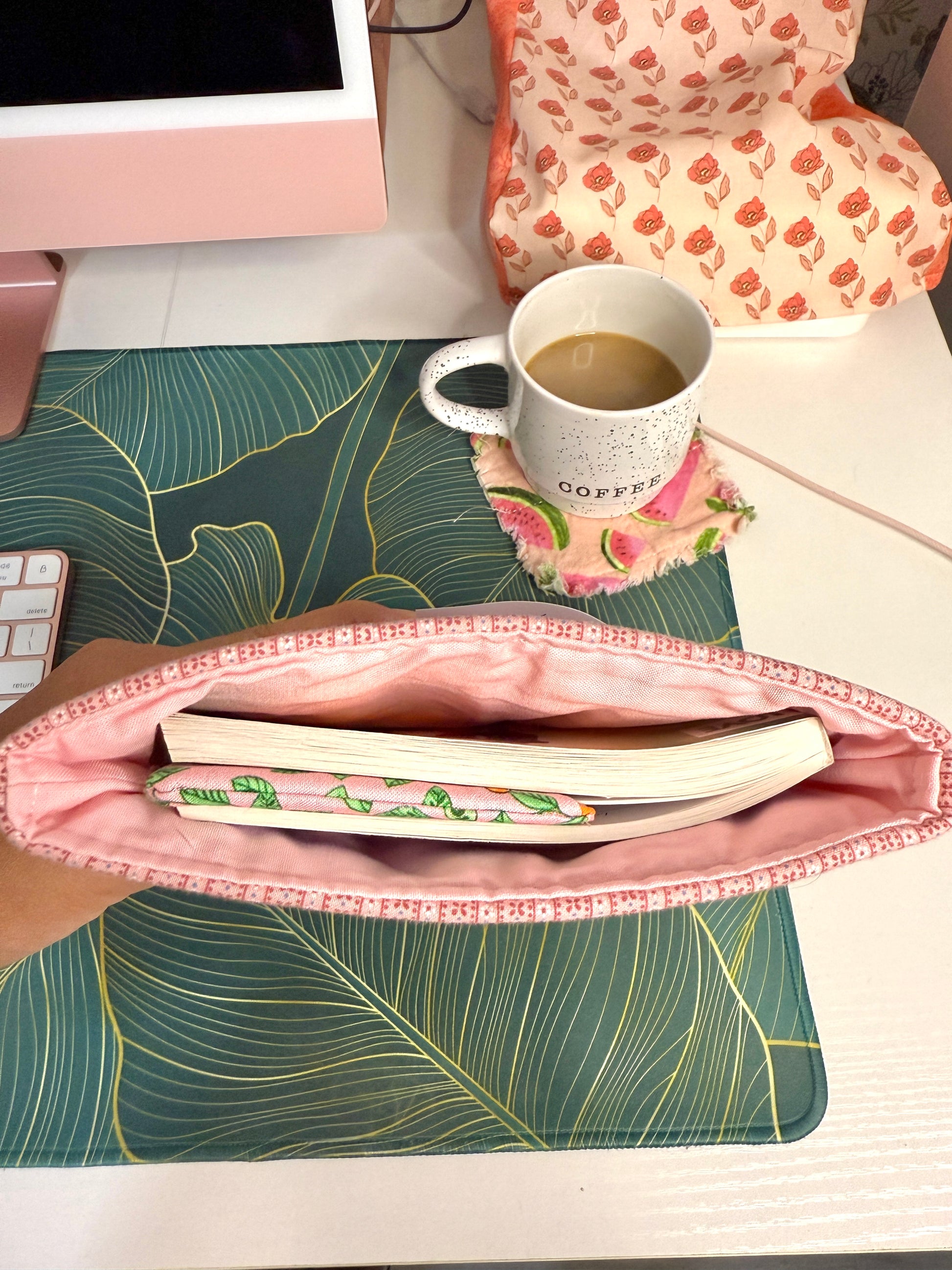 Wrap your books in a little piece of history! This delightful book sleeve features authentic vintage cross-stitched quilt fabric, upcycled to give treasured textiles a second life. The cozy light pink lining nestles standard-size books snugly, shielding them from everyday wear and tear. It's the perfect blend of eco-conscious style and bookish nostalgia—ideal for readers who love sustainable finds with personality and charm.